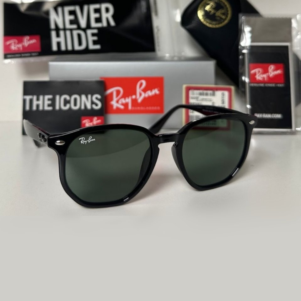 El modelo Erika Hexagonal RB 4306 combina la forma vanguardista y sutilmente geométrica con la base de confort de la línea Erika. Esta versión en Negro Brillante y lentes Verde Clásico es un look audaz y atemporal a la vez. Su construcción en Nailon Inyectado (Acetato premium) asegura una montura ligera y duradera, ideal para el uso diario con un toque de alta costura.
